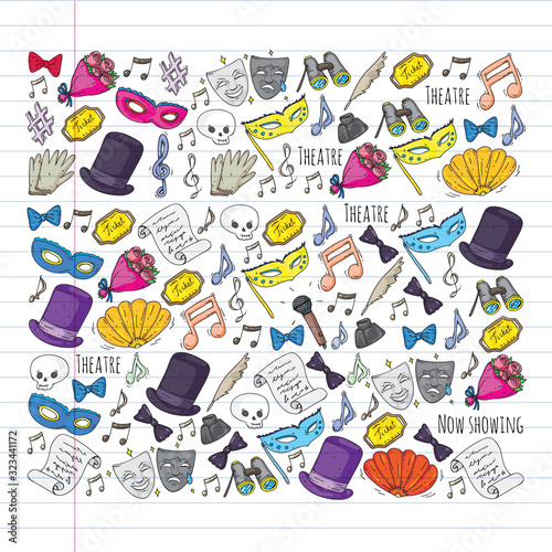 Theatre vector illustration. Entertaiment, cinema, stage, event. Background for banners, posters.