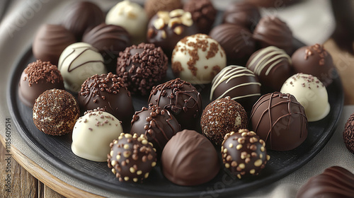 There are chocolate balls on the plate on the table