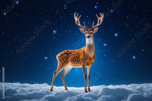 there is a deer standing in the snow with a sky background