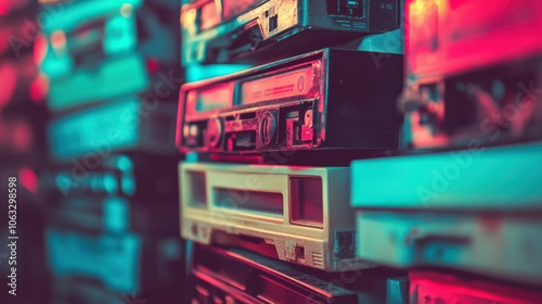 There is a glitch defect noise and artifact effect on vintage VHS tapes.