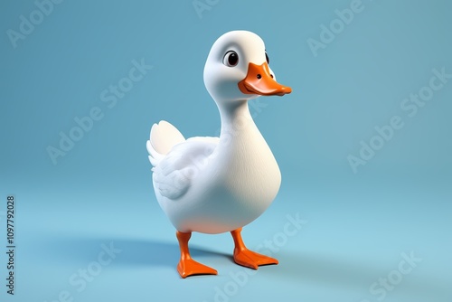 there is a white duck with orange feet and a yellow beak