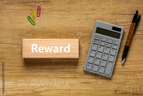 There is wood block with the word Reward. It is as an eye-catching image.