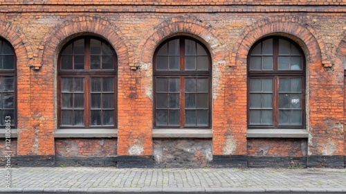 Thermal Windows with Heatproof Glazing in Restored Brick Building Facade Architecture Detail