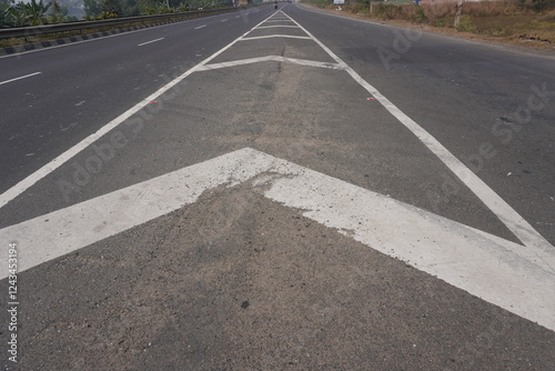 These road markings are designed to guide drivers and regulate traffic flow