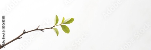 Thin and delicate branch against white surface, branches isolated on white background, nature