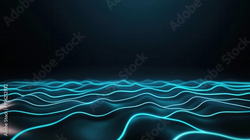 Thin glowing circuit lines creating a grid, minimalist composition on a black background, cool neon blue highlights