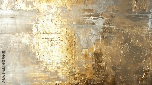 Thin, layered brushstrokes in gold and silver that create a shimmering, abstract metallic texture