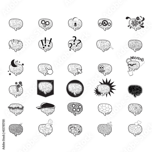 Thin Line Brain Icons Set - Isolated On White Background - Vector Illustration, Graphic Design, Editable For Your Design