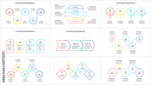 Thin line elements set for infographic. Template for diagram, graph, presentation and chart. Business concept with 3, 4 and 5 options, parts, steps or processes.
