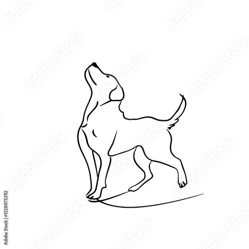 Thin Line Playful Dog Illustration - 細線遊ぶ犬イラスト