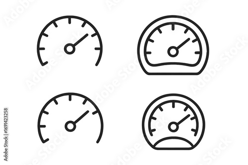 Thin line speedometer icon set, outline dashboard gauge symbols, vector speedometer meter collection for graphic design, web, apps, ads, and digital cards with transparent background