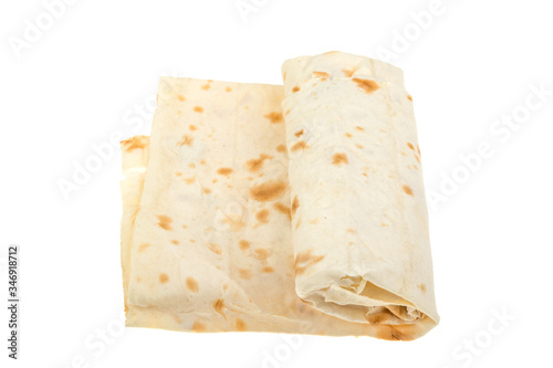Thin pita bread on a white background, isolated.