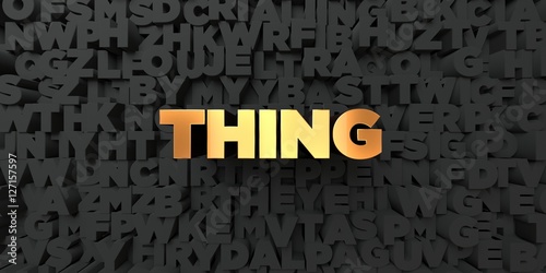 Thing - Gold text on black background - 3D rendered royalty free stock picture. This image can be used for an online website banner ad or a print postcard.