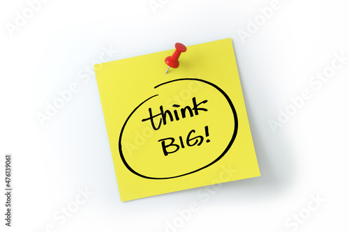 Think big written on yellow sticker note over white background