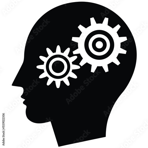 Thinking Gears Inside Human Head Black Silhouette of Cognitive Process Concept Illustration
