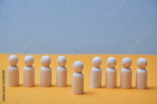 Thinking outside the box. Individual approach. Leadership and individuality. Wooden person figure stands out from crowd