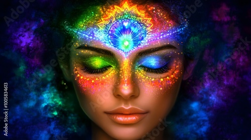 Third Eye Chakra Woman Mystical Spiritual Glow Abstract Meditation Spiritual Awakening Rainbow Color Energy Aura Psychedelic Spiritual Ar