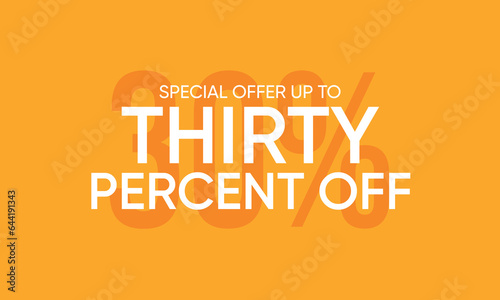 thirty percent off banner, special offer up to 30% off, 30% typography