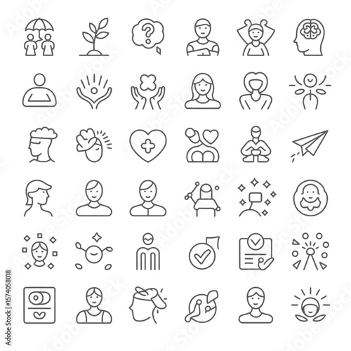 Thirty Six Black Linear Icons Illustrating Diverse Concepts Such as Life Pregnancy Charity Confidence and Human Connection Each Icon Features a Unique Unconventional Label