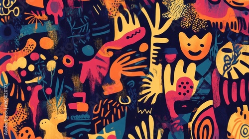 This abstract horizontal banner showcases a mix of playful shapes infused with bright colors, creating an energetic and cheerful visual experience