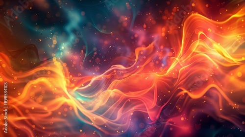This abstract image depicts a vibrant and dynamic energy field with flowing lines and glowing particles. It symbolizes creativity, movement, and the interconnectedness of things.