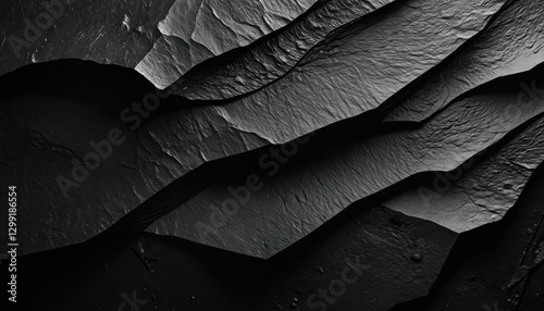 This black and white image features a mountainous landscape with varying rock formations, creating a sense of depth and texture, and a few water droplets scattered across the scene