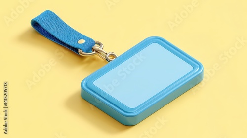 This blue ID displays a blank area for personal details, attached to a sturdy strap, and set against a vivid yellow background. Ideal for various identification needs, it captures attention