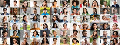 This captivating collage features a joyful array of multiracial individuals expressing happiness and positivity in different settings. Each face tells a unique story celebrating diversity.