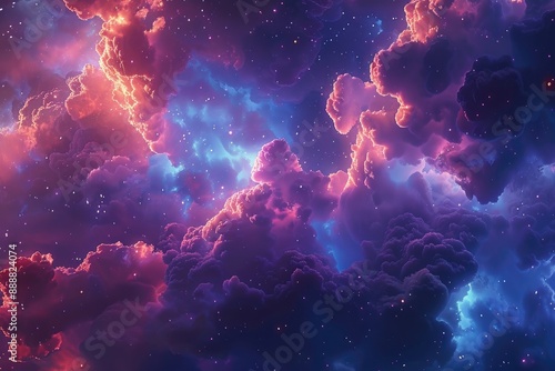 This captivating image reveals the beauty of a nebula, with its colorful clouds and shining stars in the night sky, Hazy clouds of glowing mist floating in space, AI generated