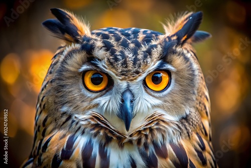 This captivating image showcases the stunning beauty and intense stare of an owl, perfect for designs requiring a touch of wisdom, nature, or wildlife.