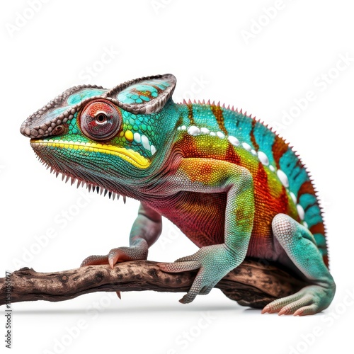 This chameleons vibrant hues blend effortlessly with its soft backdrop, showcasing natures brilliant ability to conceal.