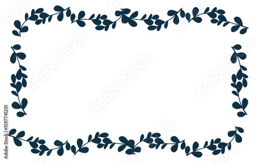 This decorative border showcases intricate dark green leaves arranged elegantly around a blank white space, ideal for invitations, cards, and art projects.