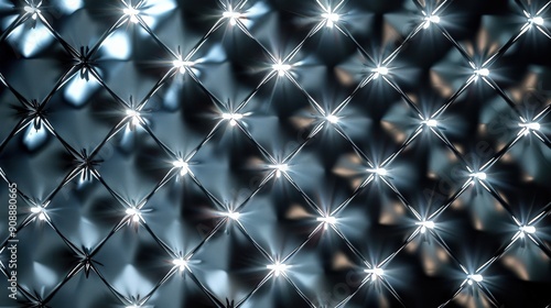 This glowing diamond pattern in silver and black sparkles with radiant light effects, creating a mesmerizing visual display suitable for various creative projects
