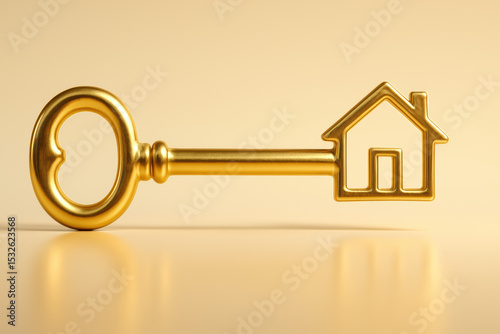 This golden key with a house-shaped bow symbolizes security and access reflecting concepts trust and opportunity in business