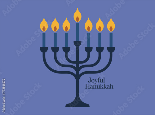 This Hanukkah vector features a beautiful menorah, dreidel, and Jewish holiday elements perfect for festive cards, decorations, and print designs.