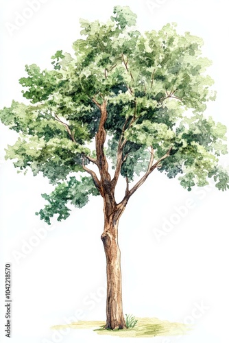 This illustration features a tall tree with a sturdy trunk and lush leaves