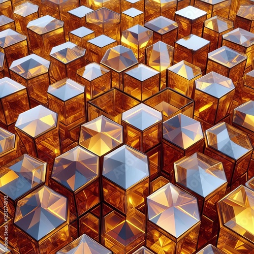 This image depicts a close-up sight of an array of large, prismatic crystals or shards of glass that have been inspected from an overhead perspective.