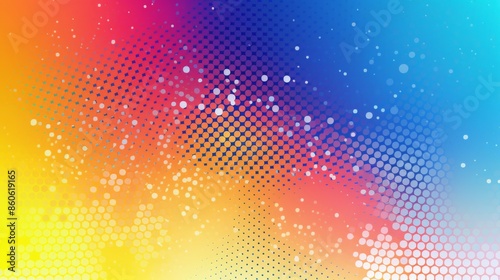 This image displays a digital representation of gradient dots that intertwine to form a vibrant color burst, offering a lively and dynamic visual experience.