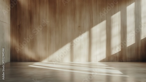 This image features a serene interior space showcasing wooden textures with soft sunlight streaming through, creating a warm, inviting atmosphere, perfect for interior design inspiration.