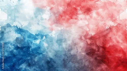 This image is a harmonious abstract watercolor painting where red and blue shades merge beautifully, creating an elegant visual with smooth transitions that suggest balance and serenity.