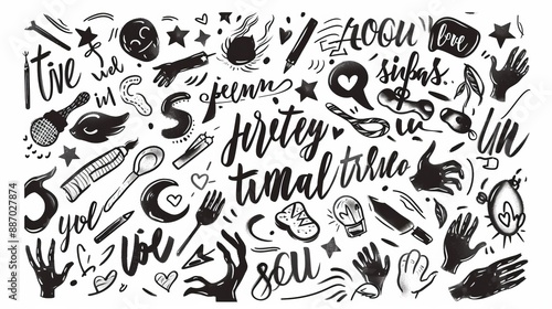 This image showcases a collage of playful and artistic doodles, including hands, hearts, stars, and various symbols that convey creativity, expression, and fun.