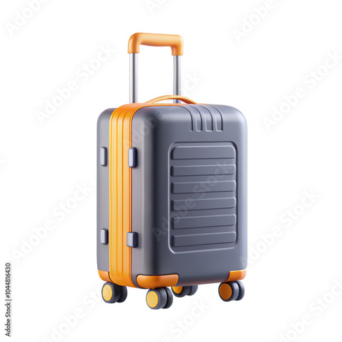 This image showcases a modern suitcase with an orange handle and wheels, designed for easy transport. A stylish travel accessory.