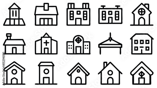 This image showcases a set of house icons, depicting various residential buildings and home symbols suitable for websites