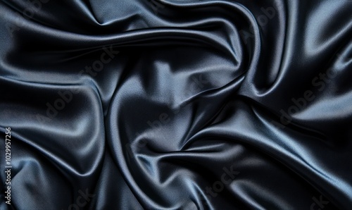This image showcases an elegant black satin fabric with luxurious waves creating a smooth texture perfect for background use