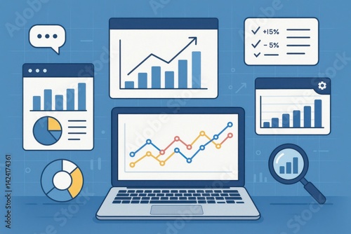 This image showcases digital analytics with graphs, charts, and statistics, highlighting trends and data analysis for effective business decision-making.