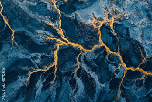 This image showcases intricate golden veins sprawling through a dark blue marbled surface, creating an abstract pattern resembling a natural network or map.