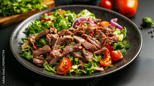 This is a dish with döner meat and salad, served on a plate.