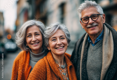 This is a photo of three older adults posing for a picture. They are smiling and appear to be happy.