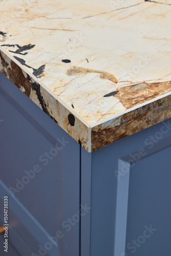 This is a stylish kitchen countertop featuring a unique edge design that stands out elegantly