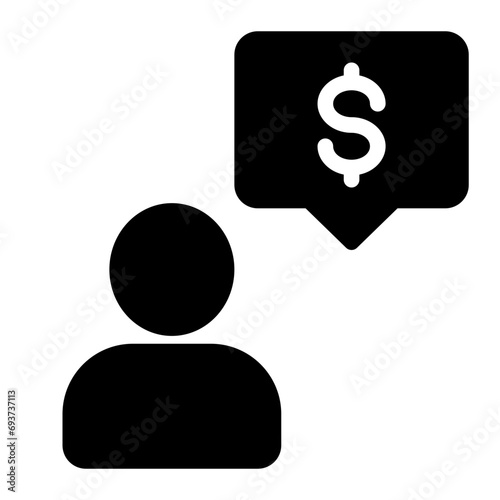 This is the Thinking Money icon from the investment icon collection with an glyph style